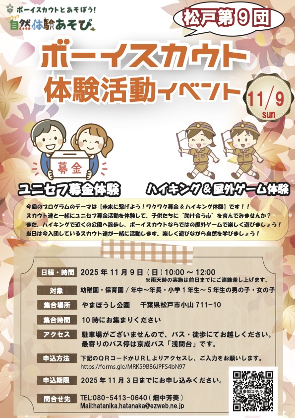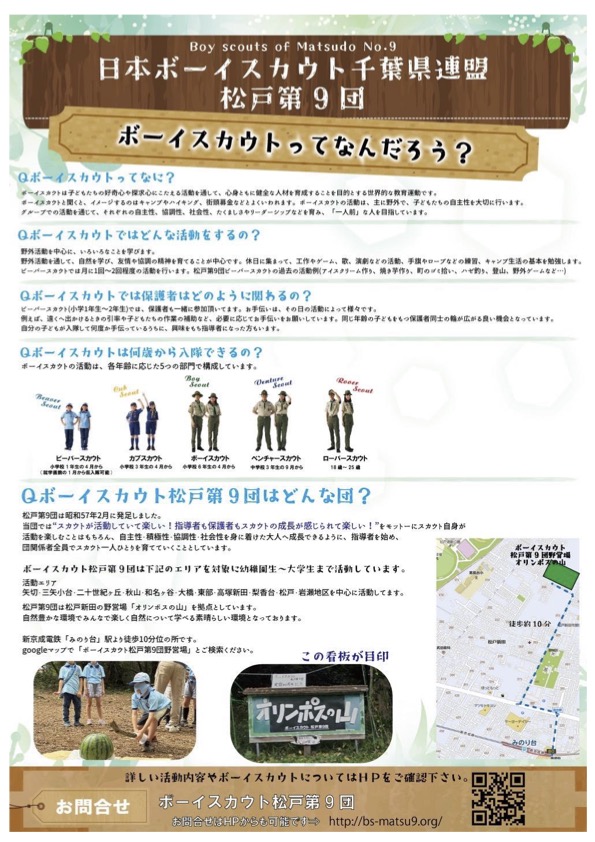 2023.03.23 新着情報 2025年4月23日 2025年4月20日 4月のテーマ「はじめの一歩」 合同隊集会 2024年12月4日 11月23日 、第2回 かわかぜ地区天下一モルック大会 2024年11月6日 10月20日 デンづくり・団芋煮会 2024年10月14日 9月14〜16日 ♪キャンプだ ほい!(3日目) 2024年10月14日 9月14〜16日 ♪キャンプだ ほい!(2日目) 2024年10月14日 9月14〜16日 ♪キャンプだ ほい!(1日目) 2024年8月16日 6月23日 隊集会 国立科学博物館 2024年6月12日 5月26日 みんなで竹琴づくり 2024年5月8日 4月21日 隊集会 基本動作など_3団合同 2024年2月22日 2月22日 BP(ベーデン・パウエル)祭り