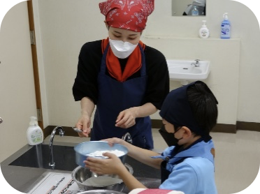 「みんなでつくって食べてみようのタイトルで和菓子つくりとお点前体験をしました。