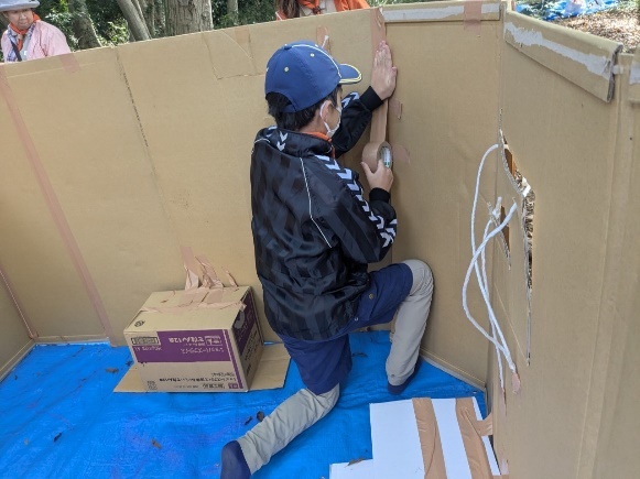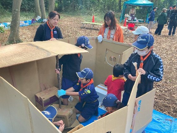 これまでの活動で使ってきた段ボールを活用します。さあ、どんなデンができるのでしょうか!?スカウトたちの個性と協調を融合させるときです!