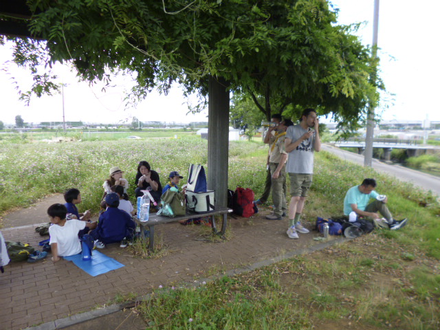 矢切の渡しのそばにある公園で水分補給。ゲームもする予定でしたが、太陽光線を遮る日影もないので、