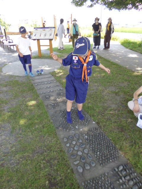 坂川親水公園には なぜか「足つぼロード」という足裏健康石の道があります。