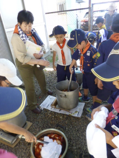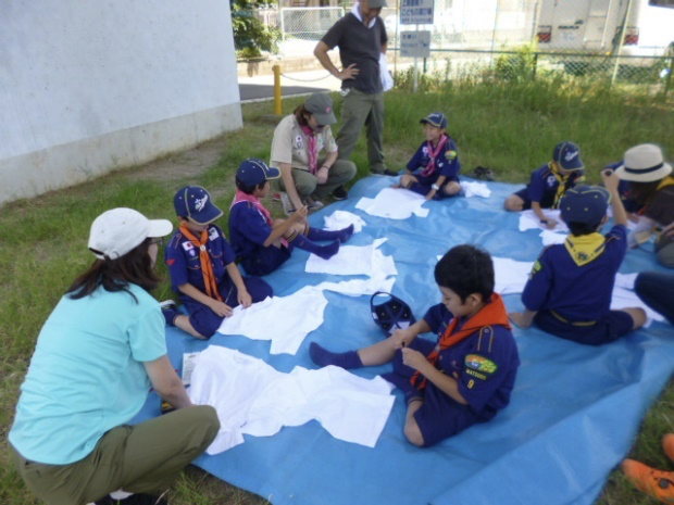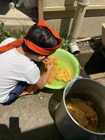 カブ隊の活動7月のテーマ 「みんなでつながろう」 玉ねぎTシャツ染め