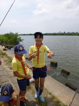 6月30日江戸川にて魚拓・エビ拓に挑戦(カブブックチャレンジ章のフィッシャーマン)