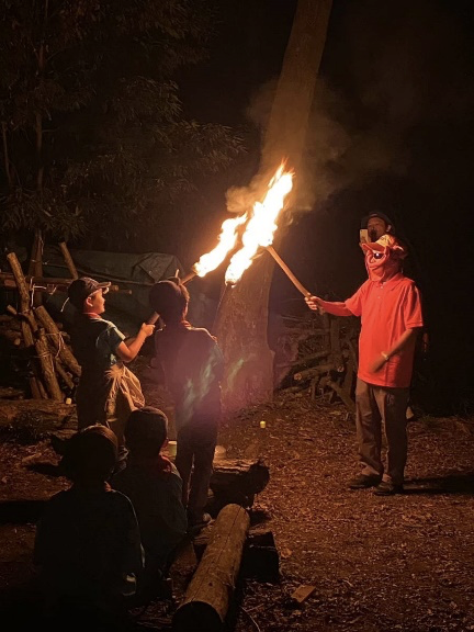オリンポスの山に隠れ住んでいる、火の神様に「さだめ」を守る事を誓い、組長・次長に火が渡されました。