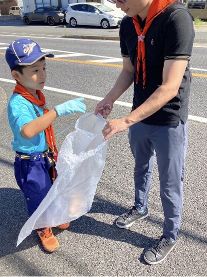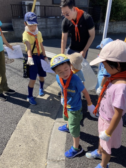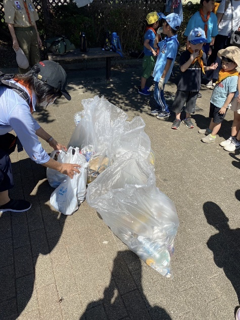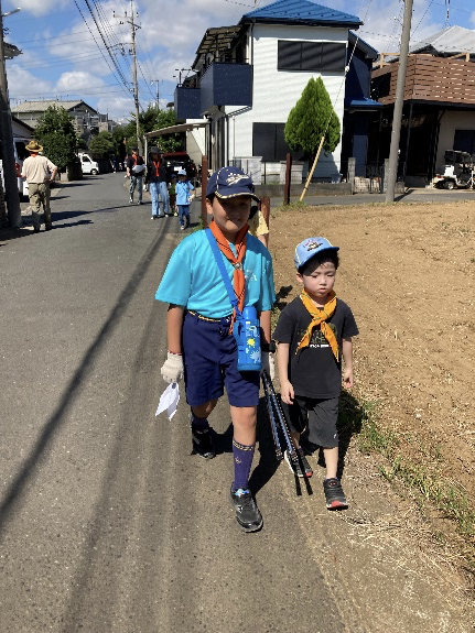 カブ隊4名の他、ビーバー隊4名、スカウトの兄弟姉妹6名、保護者、育成会、リーダーと多くの仲間が集まり、矢切・二十世紀が丘周辺を歩きながらごみ回収を実施しました。暑い日でしたが、カブ隊がみんなを引っ張り、多くの成果が上がりました。けがや事故等もなく無事終了しました。