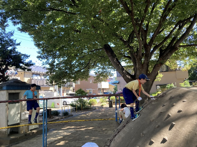 カブ隊は小さい子を連れて歩きます。