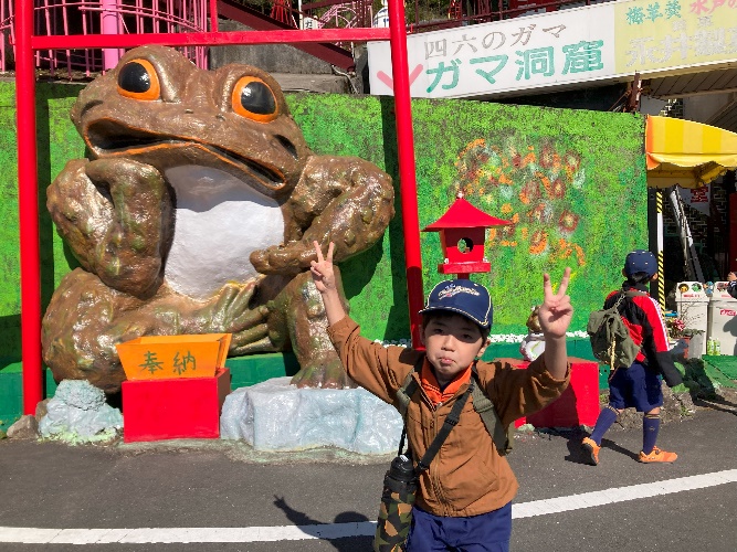 ガマガエルに安全祈願。無事に「カエル」ぞ!