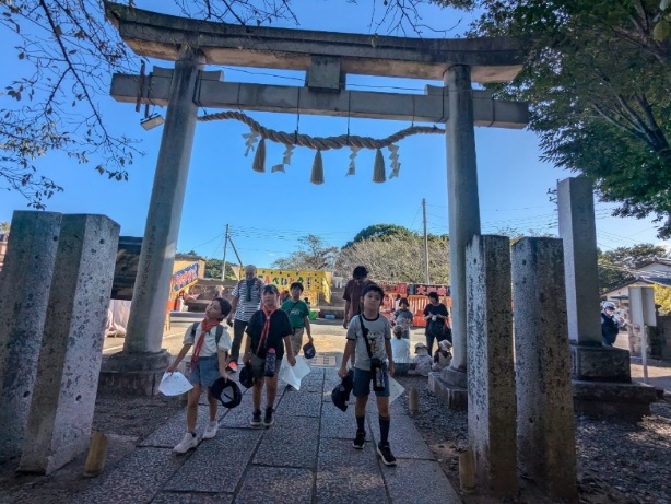 コマ地図ハイクで参拝した一言主神社で例大祭の締め括りとなる仕掛け花火「からくり綱火」が開催です。そのため、夕食後にナイトハイクで再度参拝します。茨城県指定無形民俗文化財に登録されている歴史ある行事です。