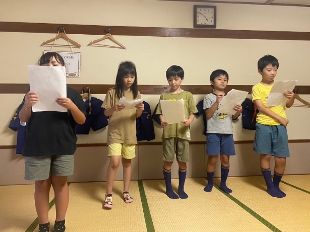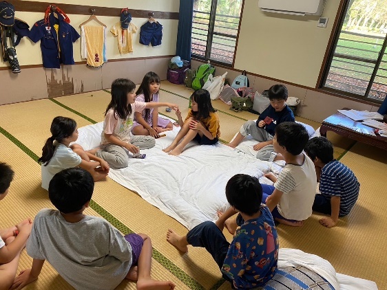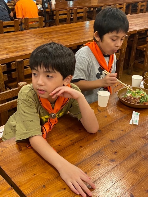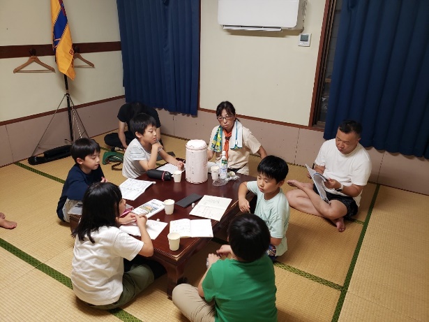 本日の最後は、組長・次長会議で締めくくりです。今日の反省と明日への抱負を共有します。スカウトの行動の良かった点、反省点などを真面目に話し合います。明日はより良い一日にするぞ!