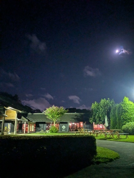 辺りは真っ暗。肝試しみたい。