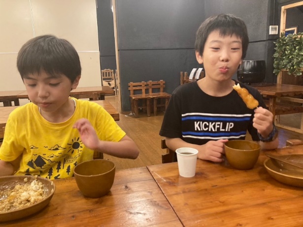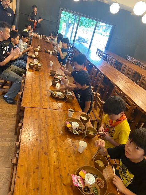 今日の夕食はカレーです。みんな食が進みます。デザートは山口育成会会長から差し入れのだんごです。みたらしとあんこのゴールデンコンビ!山口会長、ありがとうございました!