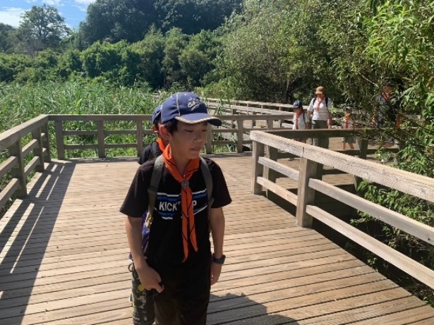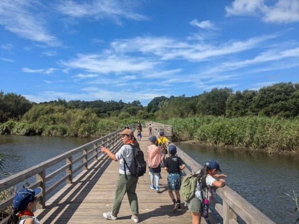 菅生沼を通ってあすなろの里に帰ります。天気は最高。空もきれい。沼には鯉や亀、大きなおたまじゃくしなど多くの生物がいます。