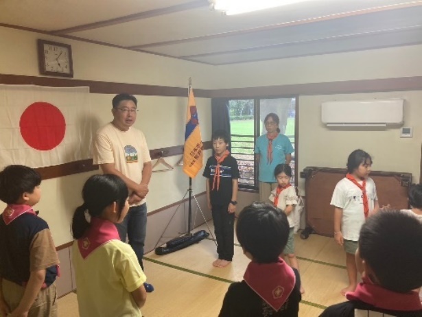いつも通り、夕べのセレモニーです。昨日の反省を踏まえて、けじめをつけて実施できました。山口育成会会長が激励に来てくれました。