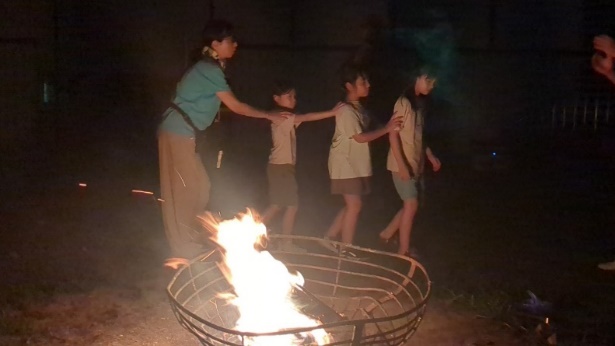 夜は涼しくなりました。厳かな雰囲気の中、毎年恒例のキャンプファイヤーです。営火長から能登地震や中東情勢を振り返り、安全に平和に暮らせていることはとてもありがたいというお話がありました。本当にそうですね。昼間ははしゃいでるスカウトもしんみり聞いています。