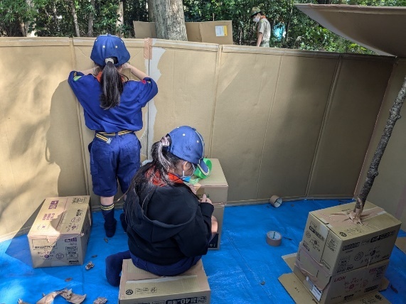 これまでの活動で使ってきた段ボールを活用します。さあ、どんなデンができるのでしょうか!?スカウトたちの個性と協調を融合させるときです!