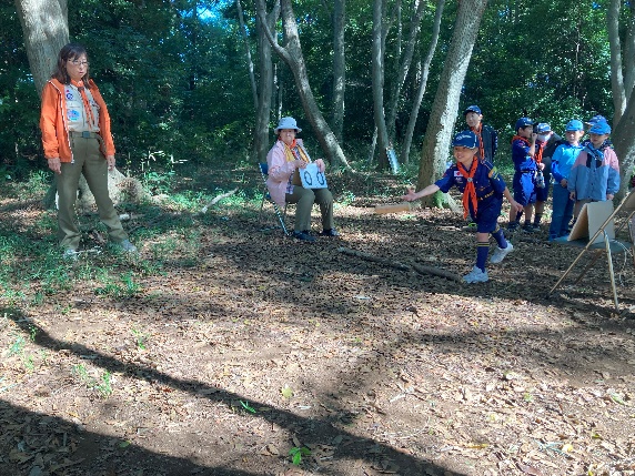組長が活動見学会に参加された皆様とビーバースカウトにデンの説明をします。皆様、興味津々です。