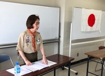育成会総会の議事が終了し、団委員長挨拶 国旗儀礼